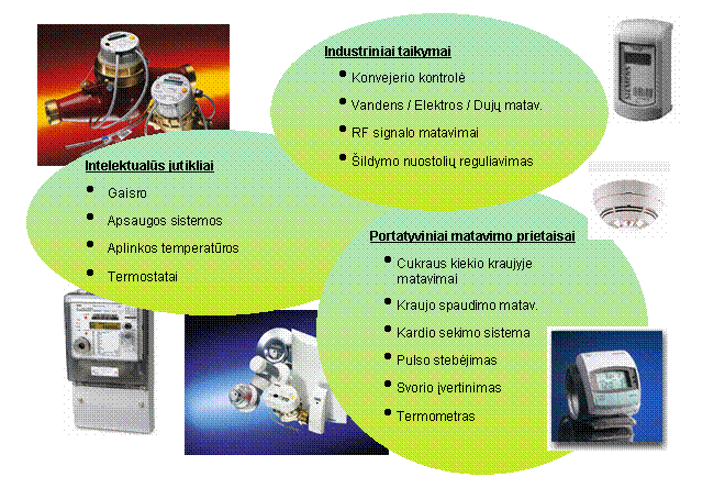 3 pav. Mikrovaldiklių MSP430 taikymo sritys