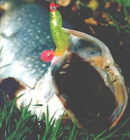 Bet kartais pasitaiko, kad eseriai būna labai vangūs ir nekimba net ir ant istikimojo velnio. Tokiu atveju as darausi velnią su vienu kabliuku - ant pagrindinio valo veriu vieną kabliuką, virsuje tvirtinu karoliuku, o apačioje risu tokį patį sviną kaip ir klasikinio velnio.