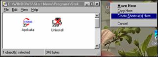 Belieka paspausti kairijį pelytės klavisą, pries tai pasirinkus trečiąjį menių rezimą Create Shortcut(s) Here.