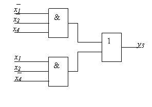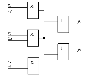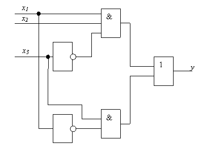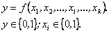 Taigi tai yra dvejetainės dvejetainių argumentų funkcijos. Sugretinę Būlio funkcijos reiksmę su kombinacinio įtaiso isėjimo signalu, o jos argumentus su įėjimo signalais, pastebime, kad Būlio funkcija ir kombinacinis įtaisas yra analogiski. Kiekvienas kombinacinis įtaisas su vienu isėjimo kanalu ir m įėjimo kanalų gali būti aprasomas m argumentų Būlio funkcija. Kombinacinio įtaiso (1 pav.) su m įėjimo kanalų ir n isėjimo kanalų modelis yra m Būlio funkcijų, priklausančių nuo n argumentų, sistema: