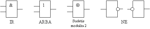 Sujungę lygtis (2.12) ir (2.13) į bendrą sistemą, gauname automato loginio keitiklio bloko logines lygtis.