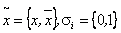 Funkcijos pateikimas kubų kompleksu K0 yra issamus, tačiau gana gremėzdiskas. Pazymėsime, kad kai kurios funkcijos komplekso K0 kubų poros yra toje pat briaunoje. Tokių kubų aprasymai skiriasi tik viena koordinate (skiltimi). Sujungsime tas 0-mačių kubų poras į 1-mačius kubus (geometriskai - į briaunas) ir uzrasysime juos taip: koordinačių, bendrų abiem 0-mačiam kubam, nekeisime, o tą vienintelę koordinatę, kuri visame kube lygi 1, kitame - 0, pazymėsime X - tai reiskia, kad ji gali būti visokia. Pavyzdziui,