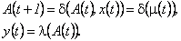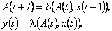 Automato vidinė būsena A(t) laiko momentu t priklauso nuo visų ankstesnių signalo reiksmių pradedant taktu (t-1). Takto (t+1) metu vidinė būsena jau priklausys ir nuo signalo X(t) takto t metu.