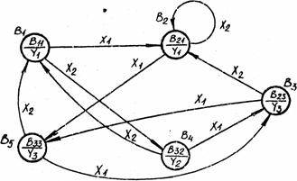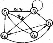 Toliau sudaromos sutapatinamų vidinių būsenų grupės. Paprasčiausiai tam naudoti būsenų santykio grafą. Kiekviena būsena sutapatinama su viena grafo virsūne, ir ekvivalentinės būsenos sujungiamos lanku (2.15 pav.).