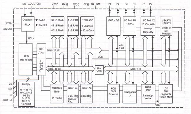 5 pav. MSP430F449 mikrovaldiklio vidiniai funkciniai blokai