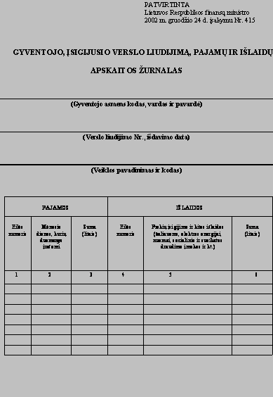 11.5. Dėl pajamų ir išlaidų žurnalo pildymo