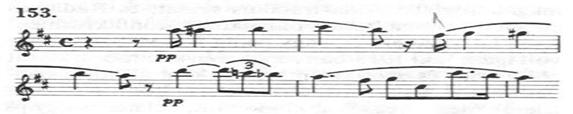 A hosszan ívelt nagy dallam utolsó előtti ütemében megszólal az alapmotívum.