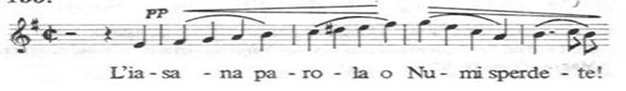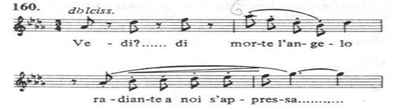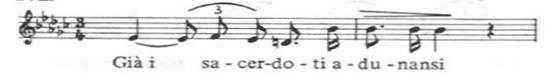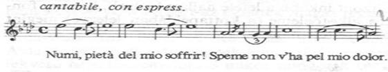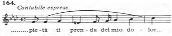 áriájából Verdi több hangot kihagy az alapgondolatból, az ambitust kis szextre