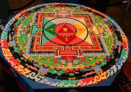 a mandala szerepe is kettős: egy földre rajzolt mandalába való belépés beavatással ér fel, másfelől