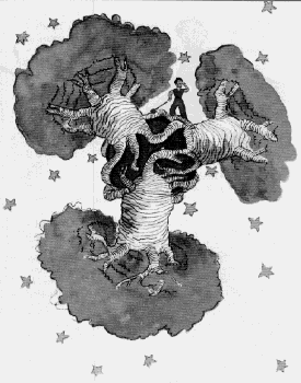 Csakhogy az én rajzom kétségkívül sokkal kevésbé elragadó, mint amilyen a mintája volt. Igaz, nem az én hibámból. Mert ami festői pályafutásomat illeti, attól már hatesztendős koromban elvették a kedvemet a fölnőttek, így aztán nem is tanultam meg rajzolni, kivéve a csukott meg a nyitott óriáskígyókat.