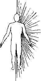 művészi ábrázolásánál megszokott a fej körüli dicsfény. Az aura kisugárzása itt