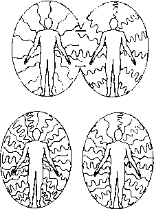 Valódi lényegünk fokozaton-ként lelassítja vibrációintenzi-tását, hogy egyesülni tudjon fizikai hordozójával, a testtel, anélkül, hogy elégetné azt. Ezek a fokozatok azok a finom testek, energiasávok, amelyek úgy helyezkednek el egymás körül, hogy minél teljesebben egyesüljenek a fejlődő fizikai testtel. A tudat a fogamzás pillanatától fogva növekvő intenzitással kötődik a fizikai testhez. |