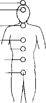 FEJTETŐ (KORONA) (tobozmirigy) SZEMÖLDÖK (hipofízis) TOROK (pajzsmirigy) SZÍV (csecsemőmirigy) NAPFONAT (mellékvesék) LÉP (mellékvesék, lép és máj) GYÖKÉR vagy ALAP (here és petefészek) |