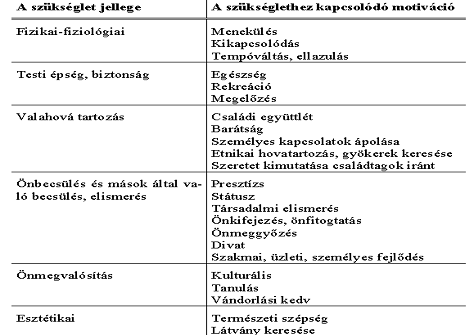 Vannak szerzők, akik a Maslow-féle szükséglet- hierarchia elmélet alapján rendszerezi az
