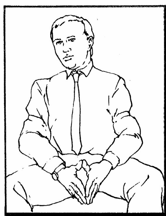 18. ábra. Keresztbe tett kar és láb, kritikus értékelés gesztusával együtt: nem tetszel sem te, sem amit mondasz, kritikával fogadom, valószínűleg nem fogadom majd el.