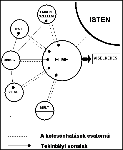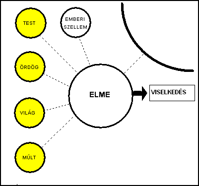 Az elme kommunikációs központjába különböző forrásokból információk, benyomások és üzenetek egész tömege áramlik be. Ezeket az adatokat az elme folyamatosan elemzi, értékeli és döntéseket hoz velük kapcsolatban. Sok adatot - valószínűleg a nagy többséget - az elme kirostálja, vagy figyelmen kívül hagyja; másokat megfontol és elutasít; néhányat elraktároz későbbi felhasználásra; a kiválasztottakat viszont döntésre az akarat elé terjeszti. Az elfogadott információk végül valamiféle viselkedést eredményeznek. Az 1. ábra rajza ábrázolja ezt a folyamatot.
