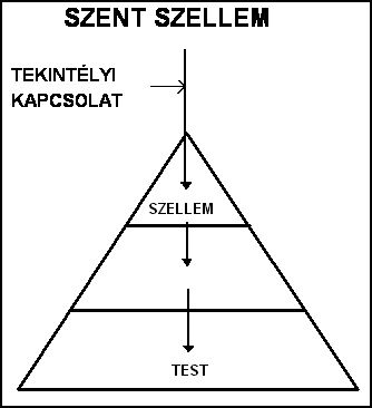 Ha azonban a hatalmat gyakorló személy maga nem él engedelmességben, nem szellemi tekintély árad belőle, hanem lelki erő. Ha a 23. ábrán letakarod az "ENGEDELMESSÉG" szót, meglátod, hogy ami létrejön, az már nem a szellemből ered, hanem a lélekből. Ennek kisugárzása a legtöbbször akaraterő; de szerepelhet ilyenkor erős érzelmi nyomás, vagy erőszakos érvelés is. Mivel ezek a dolgok a lélekben gyökereznek, a másik személy lelkét érik el. Összeütköznek az akaratok, az érvek és szemben állnak az érzelmek. Az, aki kapja a rendelkezéseket, utasításokat, vagy utat ad a felettes erőnek (de ugyanakkor neheztelést és lázadást érez) , vagy feláll és nyílt összeütközésre kerül sor.