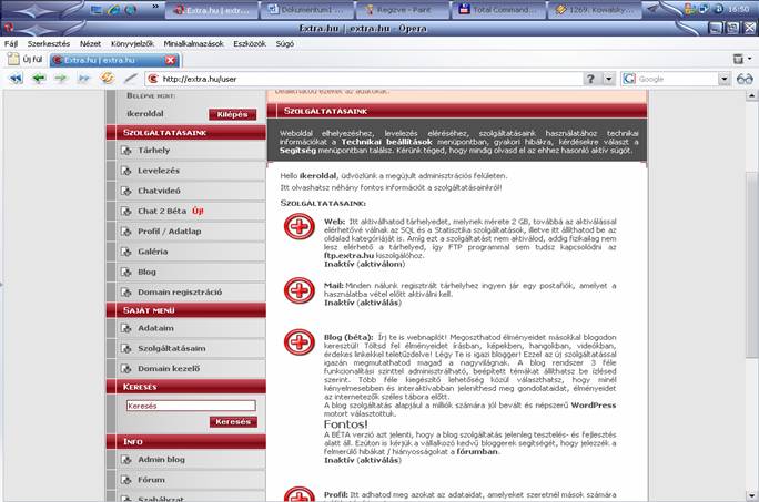 A leírás e_107 portál rendszer extra.hu szerverre történő telepítését mutatja be az első lépéstől egészen addig, hogy készen van a saját weboldalad! Én Opera böngészővel és Total Commander segítségével mutatom be. A total commander az FTP feltöltéshez kell. De rengeteg ilyen program létezik. Kezdjünk is neki.