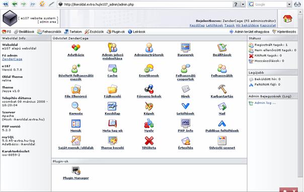 Tartalmaz többek közt: szülinap, mp3 lejátszó, videó lejátszó, szavazás, fórum, időjárás, chatbox és még számtalan plugint!