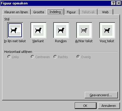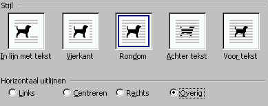 kun je de plaats van het plaatje in je document veranderen. Standaard staat