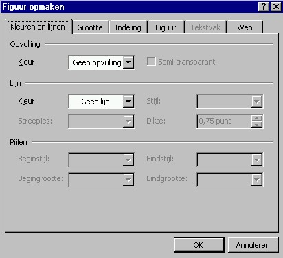 Indien je bij 'Indeling' gekozen hebt voor 'Vierkant', 'Rondom' of 'Voor tekst', kun je het figuur een kader geven. De lijn van dit eventuele kader kun je variëren.
