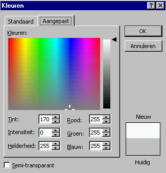 Nu kun je iedere gewenste kleur kiezen door te klikken op de kleur die je wilt. Klik daarna op OK.