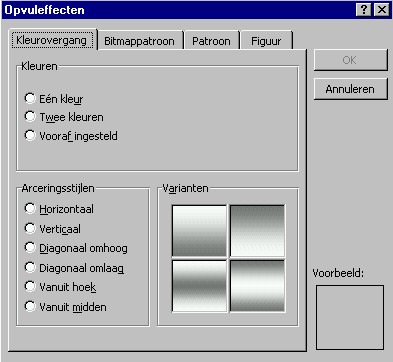 richting geven. Ik kies nu voor de vooraf ingestelde overgang 'Vroege