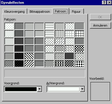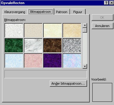 Een andere optie is om een bitmappatroon als achtergrond te nemen. Klik daartoe op het tabblad 'bitmappatroon':