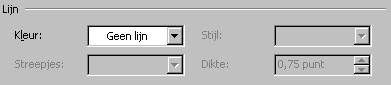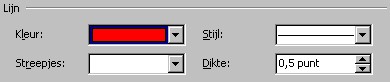 Indien je een lijn hebt gekozen, kun je de dikte en de stijl van de lijn aanpassen. Ook kun je kiezen voor streepjes in plaats van een lijn.