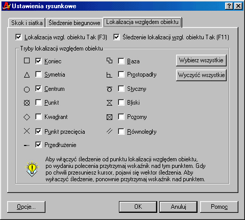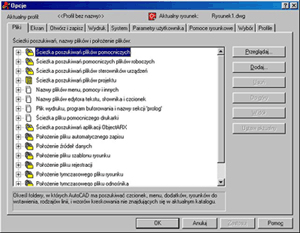 Dostosowanie programu do własnych potrzebBardzo często zdarza się, że nie odpowiadają nam fabryczne ustawienia programu, mimo że są niezłe. Jednak każdy z przekory musi dodać coś swojego, co będzie wprawiało szefa w zakłopotanie, koledzy z biura będą mu zazdrościli nowego menu czy większego "crossa". Jako że zmiana wszystkich ustawień nie ma sensu, pokażę te, które mają kluczowy wpływ na wydajność pracy z programem. Zaczniemy od kliknięcia prawym klawiszem myszki w obszarze dialogowym okna i w wyświetlonym okienku wybieramy ostatnią z pozycji Opcje. Spowoduje to otwarcie dużego okna dialogowego przedstawionego na rysunku 2.