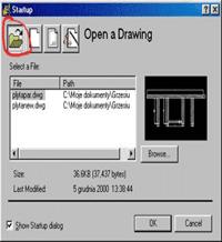 lub kliknąć na ikonie otwierania nowego rysunku (AutoCAD 2000 -- rys. 8b).