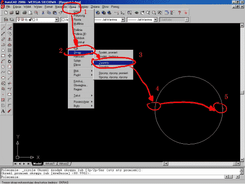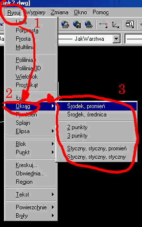 niż np. Splajn. OkrągOkrąg jest specyficznym obiektem w AutoCAD-zie, ponieważ jego reprezentacja na pasku menu rysunkowego jest przysłowiowy wierzchołkiem góry lodowej -- po kliknięciu ikony symbolizującą okrąg