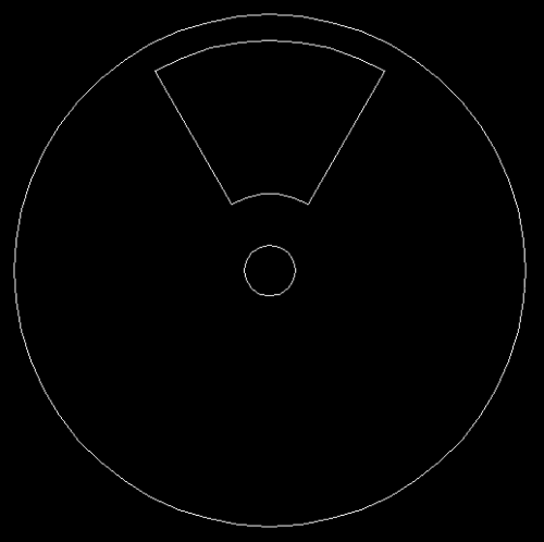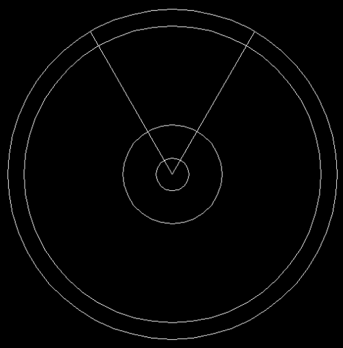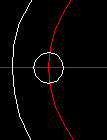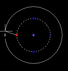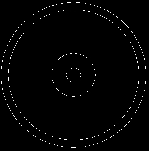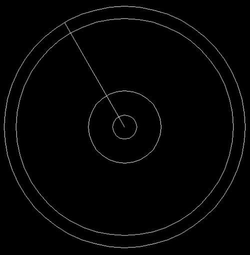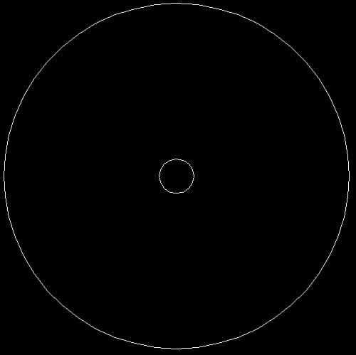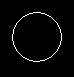 Ponieważ bezsensowne byłoby żmudne klikanie wszystkich kolejnych opcji, proponuję wykonać ćwiczenie pozwalające na narysowanie czterech niezależnych okręgów i przećwiczyć przy okazji kilka opcji ich rysowania. Pierwszym ćwiczeniem będzie narysowanie okręgu poprzez wskazanie punktu środkowego oraz długości promienia. Kliknijmy więc ikonę na pasku menu rysunkowego, a następnie kliknijmy w dowolnym miejscu obszaru roboczego. Skoro mamy już środek, czas określić promień okręgu -- kliknijmy więc w pewnej odległości od środka lub wpiszmy długość promienia ręcznie i zatwierdźmy ją, naciskając klawisz Enter. Po wykonaniu tych czynności powinniśmy uzyskać okrąg podobny do przedstawionego na poniższym rysunku.