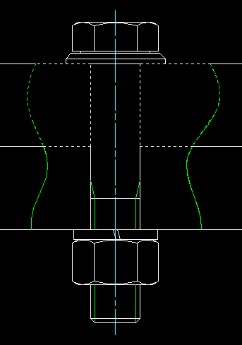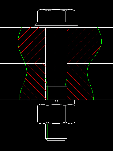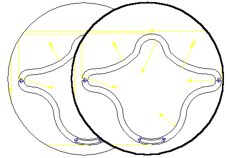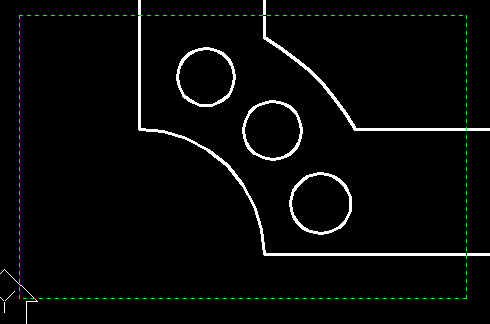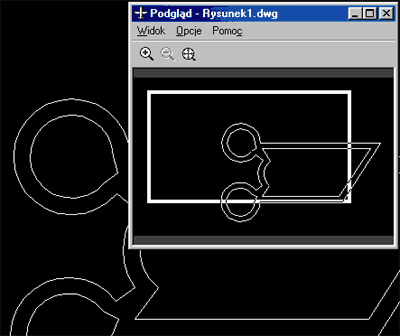 Tak jak widać, rysunek jest pozbawiony niektórych zbędnych dodatków takich jak wymiary oraz kreskowania. Ale co zrobić, jeśli chcemy teraz takie elementy dodać. Ano nic prostszego -- klikamy kolejno Plik->Wczytaj Częściowo i zaznaczmy kolejne warstwy do wczytania na rysunku w oknie dialogowym, które już poznaliśmy. Tak więc można powiedzieć: fajna zabawka, ale czym, poza oszczędnością pamięci, różni się ona od włączania czy wyłączania odpowiednich warstw na rysunku wczytanym w całości. Jest jeden pewien malutki "detalik", który pozwala na częściowe wczytanie kawałka rysunku i dołączenie jego reszty, ale tylko w jego wskazanym fragmencie. Aby pokazać taką sztukę, dołączę do naszego częściowo otwartego rysunku informacje, jakie mnie interesują, ale tylko w części pokazanej na poniższym rysunku.
