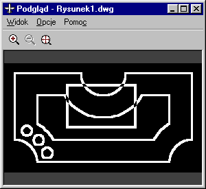 Mając już przykładowy rysunek, możemy pozwolić sobie na jego dokładne obejrzenie przy pomocy narzędzi, które zostały omówione w lekcji 11. poprzedniego cyklu dla początkujących -- czyli ZOOM PAN. Jednak oglądanie przy pomocy tych narzędzi jest w pewnym sensie niepełne. AutoCAD oferuje jeszcze inne sposoby śledzenia zawartości rysunku, a jednym z nich jest Podgląd. Narzędzie to pozwala na stałe śledzenie zawartości rysunku przy pomocy specjalnego okna dialogowego, które pozwala na wykonywanie dynamicznych zbliżeń do wybranych fragmentów edytowanego rysunku. Uff! Teraz może przejdźmy do praktyki. Aby uruchomić narzędzie podglądu, klikamy ikonę przedstawioną poniżej: