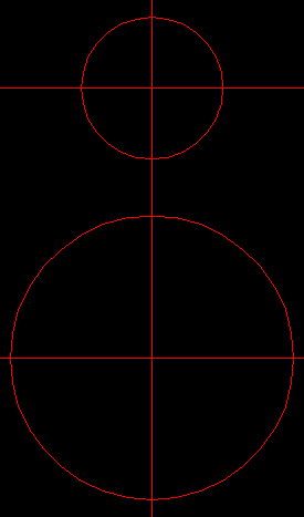 Mamy już narysowane dwa okręgi, ale docelowo ma ich być cztery, czas więc na przedostatni -- narysujemy go poprzez wskazanie środka i średnicy. Z głównego menu wybieramy Rysuj -> Okrąg -> rodek, średnica i podobnie jak podczas wybrania opcji na pasku narzędzi wskazujemy środek okręgu oraz wpisujemy ręcznie długość średnicy.