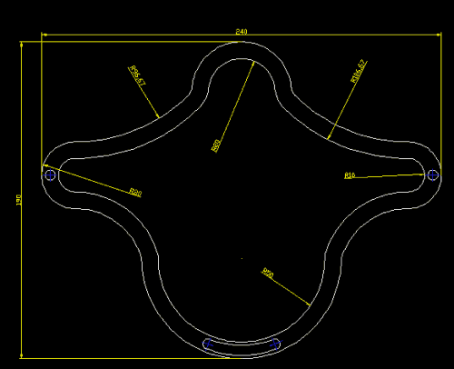 W poprzednich lekcjach zapoznaliśmy się z metodami rysowania w AutoCAD-zie oraz konfigurowania swojego środowiska pracy w tym programie. Potrafimy teraz wykonać niemal każdy projekt w przestrzeni 2D, nie tracąc czasu na dodatkowe czynności konfiguracyjne podczas projektowania. Zdarza się jednak, że efekty naszej pracy muszą zostać zademonstrowane w formie odmiennej od standardowego nośnika, czyli odpowiedniego arkusza folii czy papieru. Przykładem może być przedstawienie naszego projektu w formie prezentacji czy też drukowanego folderu. Może się zdarzyć, że nasi kontrahenci nie będą mieli AutoCAD-a, lecz inny program, za pomocą którego będą chcieli nanieść poprawki na materiał projektowy. W takich sytuacjach również musimy sobie radzić. Niniejsza lekcja będzie w całości poświęcona metodom eksportowania plików AutoCAD-a i przetwarzania ich w innych programach. Przedstawię sposoby zapisywania plików w postaci umożliwiającej ich dalszą edycję w programach CAD lub innych programach pozwalających na przetwarzanie grafiki wektorowej. Pokażę również, w jaki sposób przygotować pliki do druku czy prezentacji w Internecie. Zacznijmy od narysowania dowolnego projektu w AutoCAD-zie, aby mieć odpowiedni materiał, który będziemy mogli dowolnie przetwarzać na różne formaty. Proponuję narysowanie w miarę prostego rysunku, ponieważ naszym celem nie jest rozwijanie swoich zdolności artystycznych, lecz poznanie sposobów konwersji plików graficznych. Przygotowałem rysunek takiej oto blaszki: