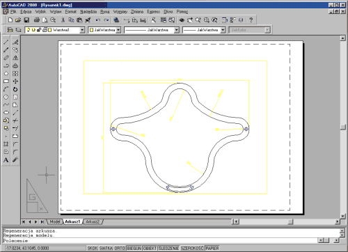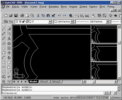 Lekcja ta zapoczątkuje serię szkoleń dla początkujących użytkowników AutoCAD-a. W kolejnych artykułach tego cyklu postaram się przybliżyć narzędzia i techniki projektowania w tym programie poprzez odpowiednio przygotowane lekcje. Każda będzie zaczynała się dwu-, trzyzdaniowym streszczeniem poprzedniej oraz krótkim wprowadzeniem w temat nowej lekcji. Wszystkie będą zawierały ćwiczenia praktyczne oraz pliki udostępniane wraz z artykułem. Pora przejść do meritum sprawy, czyli do AutoCAD-a. Wszystkie ćwiczenia, jakie będziemy prezentować, będą wykonywane w wersji 2000. Bardzo często zdarza się, że projektanci pracujący z programem AutoCAD popełniają elementarne błędy z uwagi na nieznajomość filozofii pracy z programem i będzie to zagadnienie, które postaram się przybliżyć w tej lekcji. Ponadto omówię wygląd głównego okna aplikacji, aby pokazać, w jak przejrzysty sposób są rozmieszczone poszczególne opcje programu. Pokażę, jak dostosować go do własnych potrzeb -- na tym etapie jeszcze nie wiemy, jakie są nasze potrzeby, ale jest to najodpowiedniejsza chwila, aby poznać podstawy. Uznałem, że nie będę opisywać instalacji oprogramowania, ponieważ tego uczą podręczniki. Po tym przydługim wstępie zacznijmy naukę. Filozofia pracy z programem AutoCADZakładam, że wielu z projektantów podczas pracy zetknęło się z deską kreślarską -- horror. Gdy przesiadają się z deski na AutoCAD-a, starają się wprowadzić w życie wszystko to, czego się nauczyli, więc rozpoczynając rysunek, zadają następujące pytania: