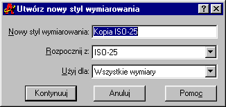 Praca z tym oknem nie różni się zbytnio od tej, którą trzeba wykonać podczas tworzenia pozostałych stylów. Aby dodać nowy styl, wpisujemy jego nazwę w polu Nazwa i klikamy przycisk Dodaj. Styl ten zostanie automatycznie przyjęty jako domyślny i jako punkt wyjścia -- standardowy styl AutoCAD-a.