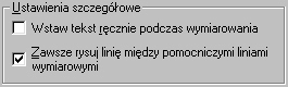 Pozostałe zakładki są raczej rzadko używane, ale warto wiedzieć, do czego służą -- ta wiedza może okazać się przydatna. Kontynuujmy więc rozważania o stylu wymiarowania. Zakładka Dopasowanie pozwala na zmianę parametrów związanych z odpowiednim ustawieniem tekstu wymiarowego w przypadku, gdy brakuje miejsca na wstawienie standardowego tekstu.