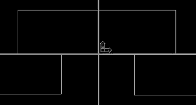 Innym sposobem, który ułatwia przeglądanie edytowanego rysunku, jest stosowanie rzutni, zwanych również potocznie przez projektantów widokami. Idea pracy z rzutniami jest bardzo prosta i praktycznie wykorzystuje się ją we wszystkich programach służących do modelowania 3D. Ekran, na którym edytujemy rysunek, zostaje podzielony na pewną skończoną liczbę niezależnych "widoków" -- rzutni. Najlepiej pokaże to poniższy przykład, w którym możemy zaobserwować, że nasz rysunek jest widoczny niejako w czterech niezależnych obszarach rysunkowych.