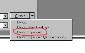 No tak, ale gdzie nasze częściowe otwarcie rysunku? I to jest dobre pytanie. Klikając strzałeczkę obok klawisza Otwórz, zostanie otwarte menu pomocnicze pozwalające na wybranie odpowiedniej opcji otwarcia danego rysunku. Jest wśród nich również opcja częściowego otwarcia rysunku