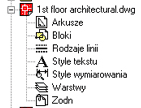 Jak widać, w prawym oknie pojawiły się wszystkie warstwy zebrane w tym rysunku. Kliknijmy jedną z nich i przeciągnijmy ją do naszego nowo otwartego rysunku. Jak widać, AutoCAD automatycznie dołączył warstwę.