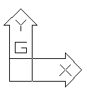 dokonamy obrotu LUW o 90° -- oznaczenie LUW natychmiast zniknie z ekranu, natomiast w lewym dolnym rogu pojawi się następujący znaczek: