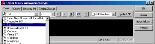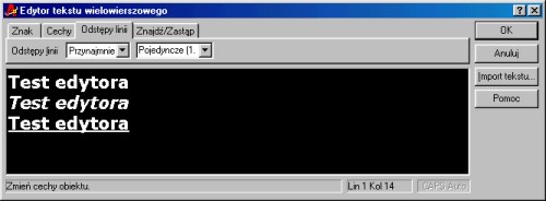 i wskazujemy obszar paragrafu. Po tych zabiegach otwiera się okno Edytora tekstu wielowierszowego-klikamy przycisk Import tekstu ... W pokazanym okienku wybieramy interesujący nas plik tekstowy i klikamy OK