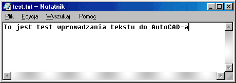 wczytywanie pliku tekstowego przygotowanego poza programem AutoCAD Ufff, przebrnęliśmy etap opisu okna dialogowego edytora, pora więc na odrobinę zabawy. Wczytamy sobie do AutoCAD-a tekst przygotowany w programie zewnętrznym. Otwieramy Notatnik i wpisujemy interesujący nas tekst.