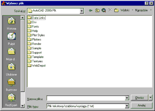 i wówczas w rozwiniętym oknie znajdujemy zapis o treści Szablonu rysunku AutoCAD *.dwt