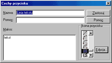 Zatem, nie marnując czasu, nazwijmy nasz przycisk w sposób odpowiedni do używanej funkcji. Proponuję, aby funkcją dodaną do przycisku było polecenie TEKST. Polecenie TEKST wpiszemy w okno dialogowe Makro