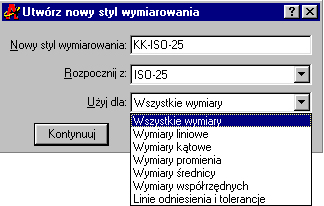 Nadajmy więc nazwę nowemu stylowi wymiarowemu, np. "KK-ISO-25", i kliknijmy przycisk Kontynuuj. Pojawi się widoczne poniżej okno dialogowe.