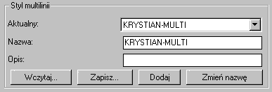 Praca z tym oknem nie różni się zbytnio od tej, którą trzeba wykonać podczas tworzenia pozostałych stylów. Aby dodać nowy styl, wpisujemy jego nazwę w polu Nazwa i klikamy przycisk Dodaj. Styl ten zostanie automatycznie przyjęty jako domyślny i jako punkt wyjścia-standardowy styl AutoCAD-a.
